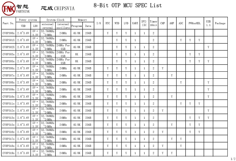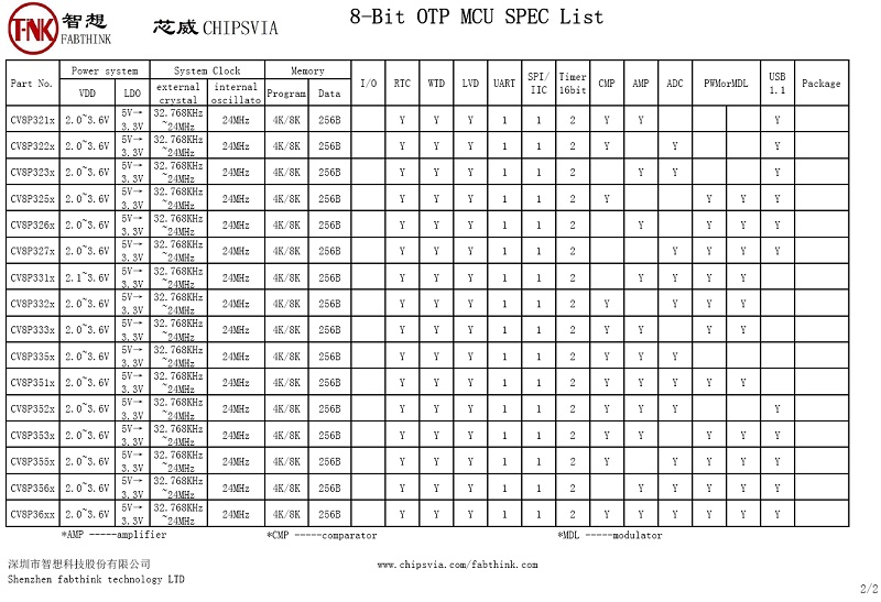 CV8P3X series MCU 0.18um 3.3V
